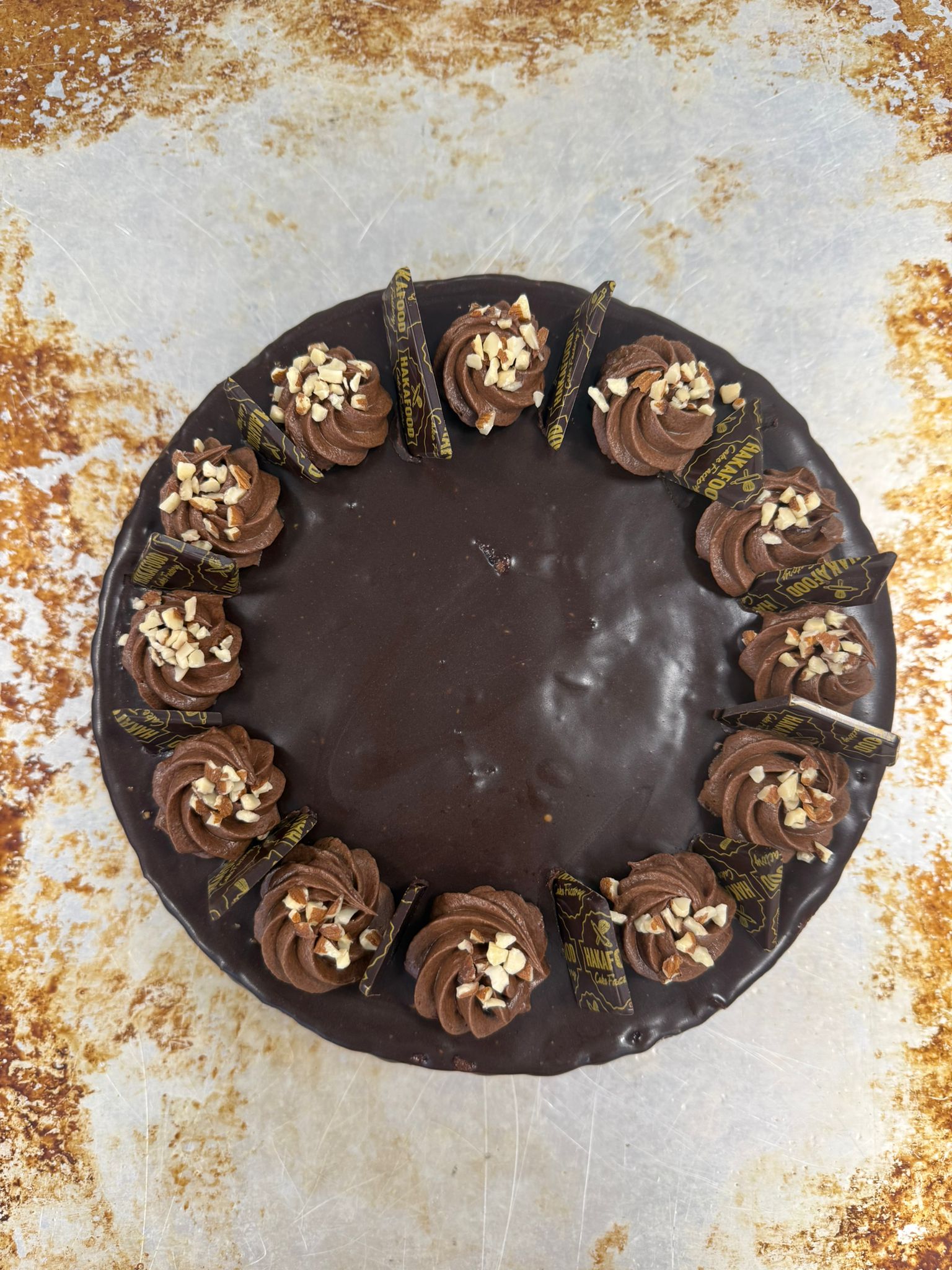 Pohja: Sokeri, KANANMUNA, kasviöljyt (rypsi, kookos), tärkkelys (peruna, riisi), muunnettu tärkkelys (peruna), kookosöljy, nostatusaineet (E450, E500), glukoosisiirappi, manteli, suklaa (kaakaomassa, sokeri, dekstroosi), kaakaojauhe, emulgointiaineet (E481, E472e, E475, E471, E322), suola, melassi, luontainen bourbonvanilja-aromi, sakeuttamisaine (E415), väri (E160a).